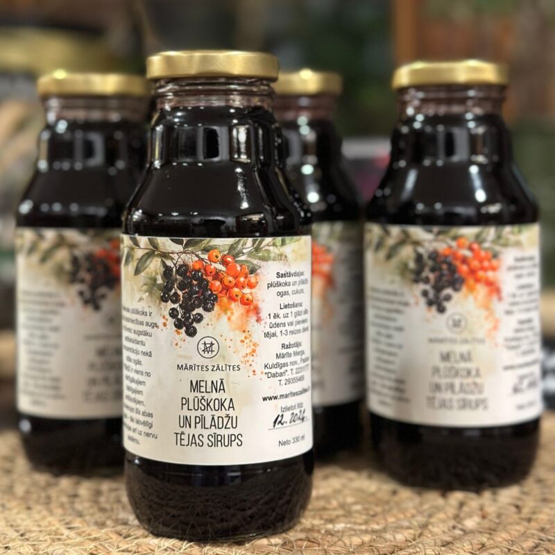 Melnā plūškoka – pīlādžu tējas sīrups.
