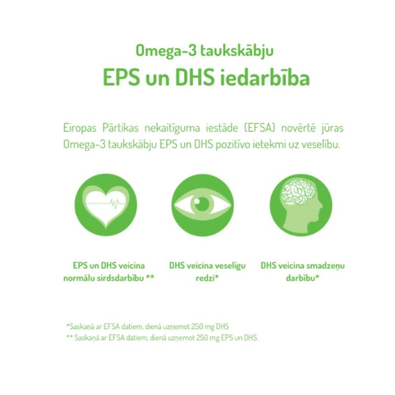 • 1700 mg omega-3 DHS (dokozaheksaēnskābe) un EPS (eikozapentaēnskābe) dienas devā